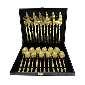 JUEGO CUBIERTOS ACERO INOX DORADO BRILLANTE 24PZS 4HM14-7