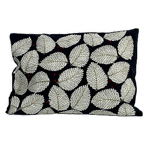 COJIN ALGODÓN BORDADO AZUL HOJAS BLANCAS PDD-CC-2022-362 (36 x 51cm)