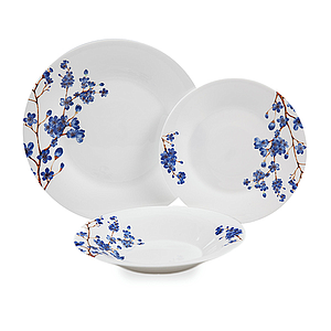 SET PLATOS FLORES AZULES 18PZS 22470447 (6 HONDOS - 6 PLANOS - 6 MEDIANOS)