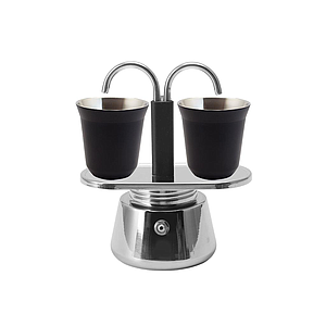 CAFETERA TIPO MOKA BACCIO DUETTO PLATA CON VASOS NEGROS 7862140130145