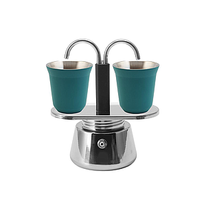 CAFETERA TIPO MOKA BACCIO DUETTO PLATA CON VASOS VERDES 7862140130176